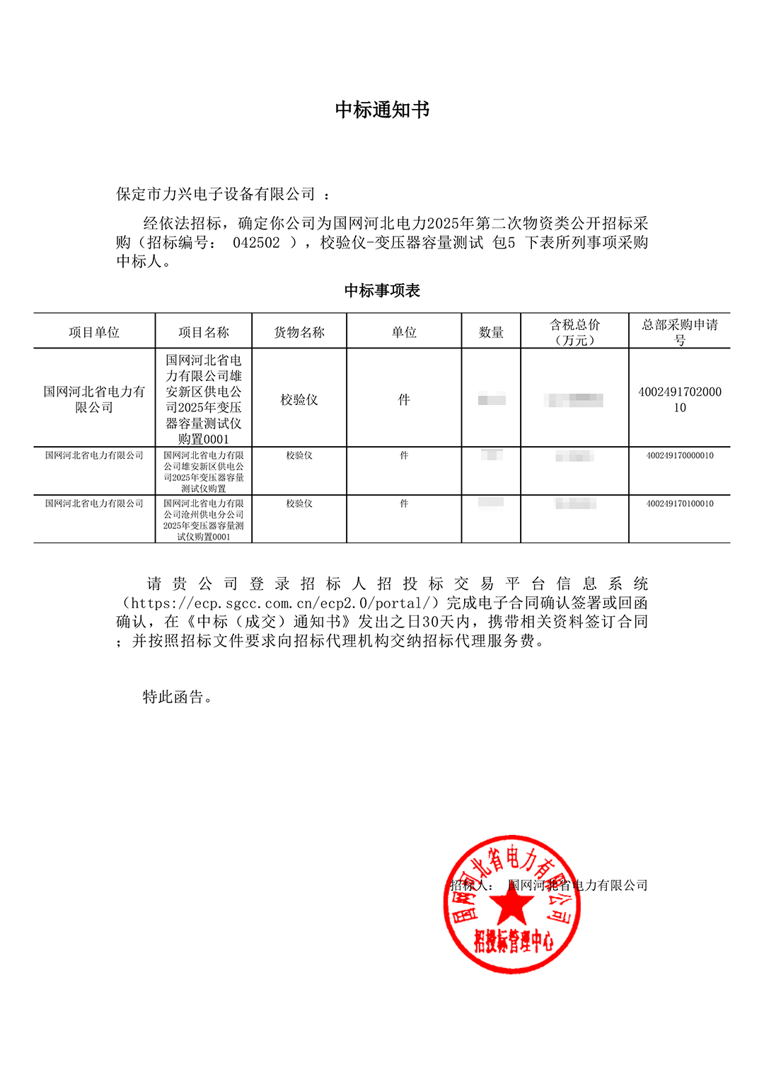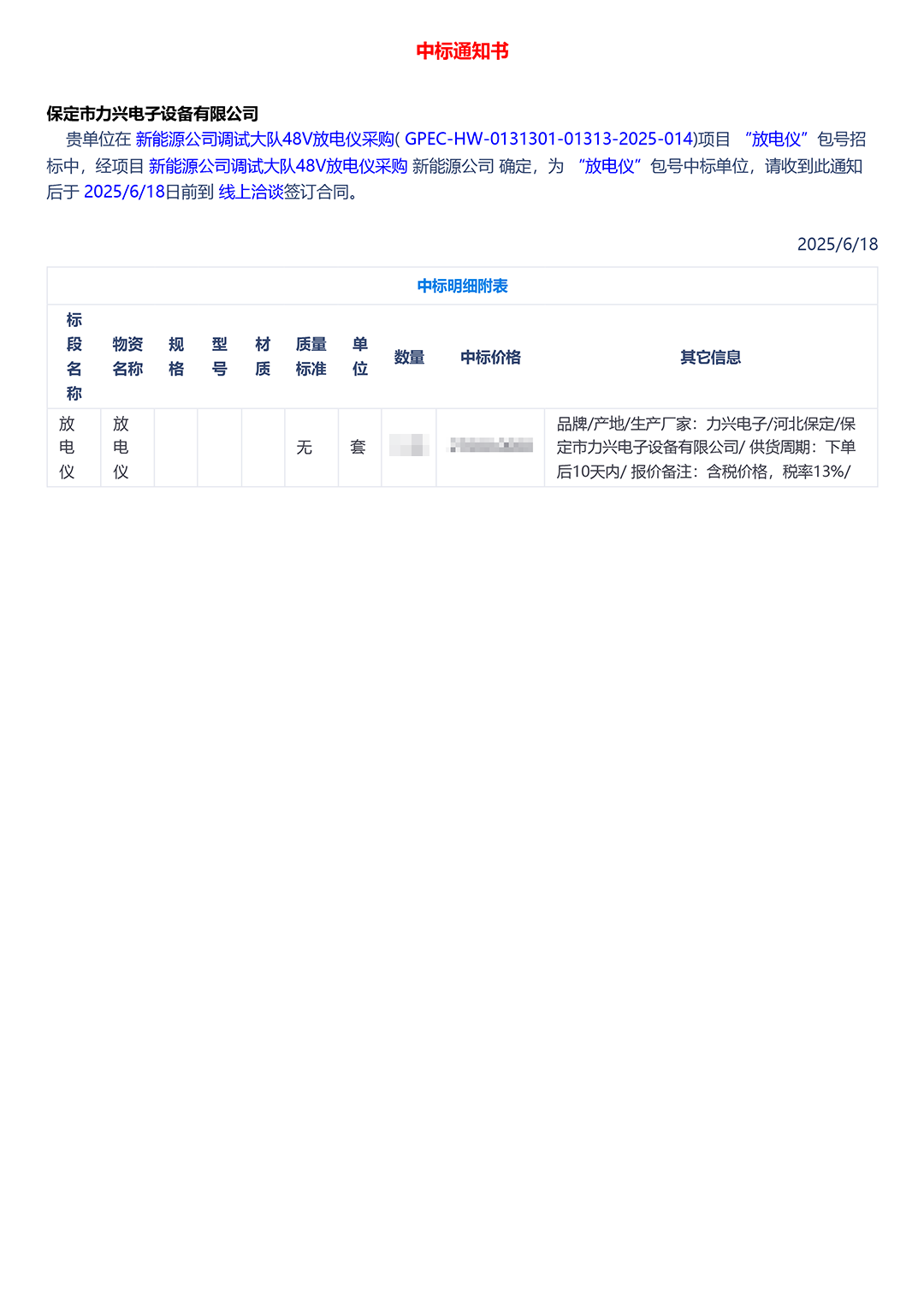 保定市力興電子設(shè)備有限公司第二季度中標(biāo)通知如下展示,我們將團(tuán)結(jié)一致,再接再厲,迎接已經(jīng)到來的第三季度。